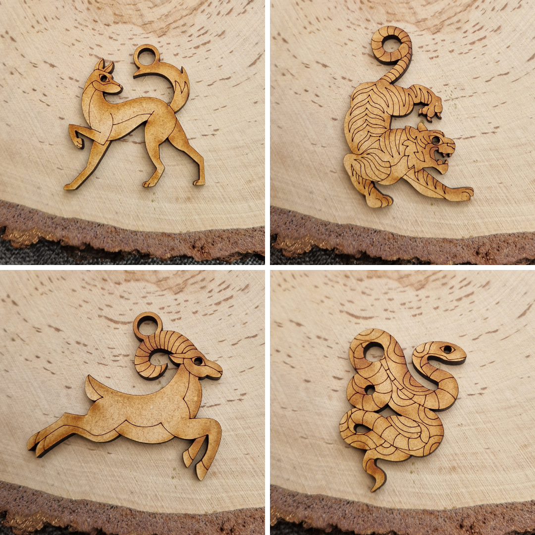 - 20 wooden shapes: all 12 Chinese Zodiac animals plus 8 Chinese lanterns