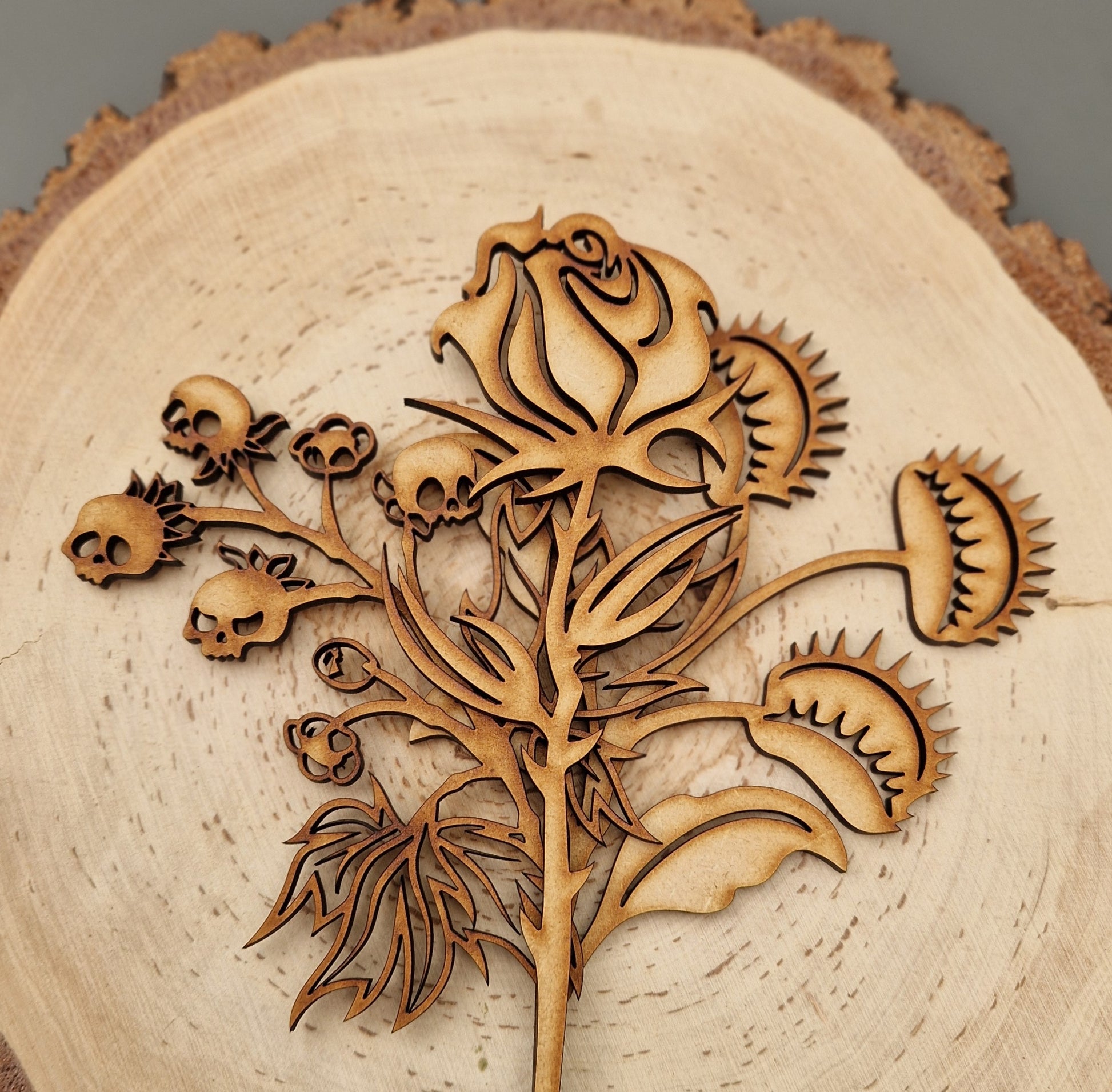 A sculptural twist on florals: gnarled silhouettes and clean cuts for alternative interiors that like a little edge. Choose from Thorned Rose, Venus Fly Trap and Skull Berries in our classic recycled wood. Precision laser-cut to last, designed for alternative aesthetics and modern, moody interiors.