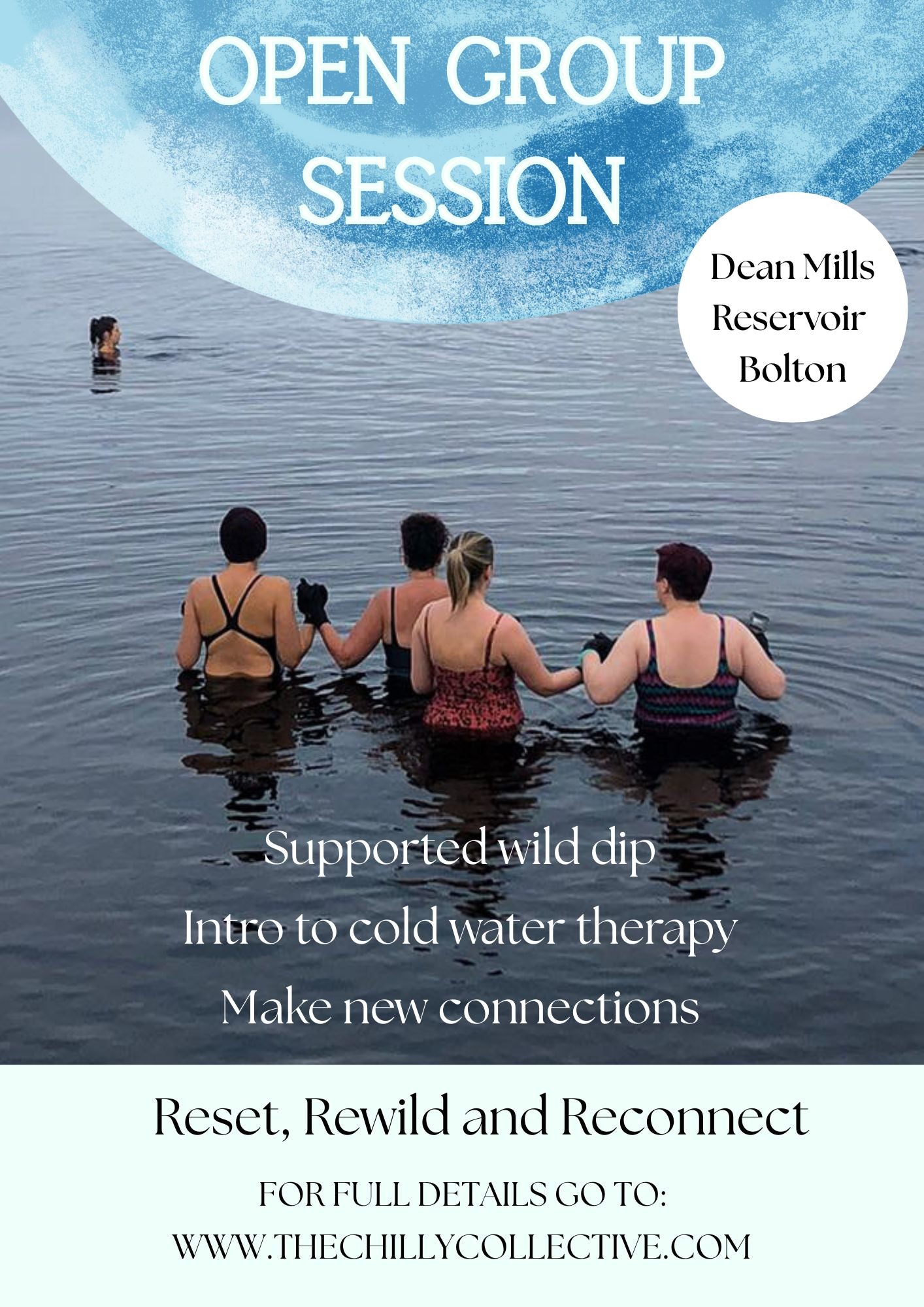 Escape the everyday and reconnect with nature on this supported wild immersion at Dean Mills Reservoir, Smithills Moors, Bolton. Experience the invigorating benefits of cold water therapy in a safe, guided setting with a small group to ensure personalised attention and connection.