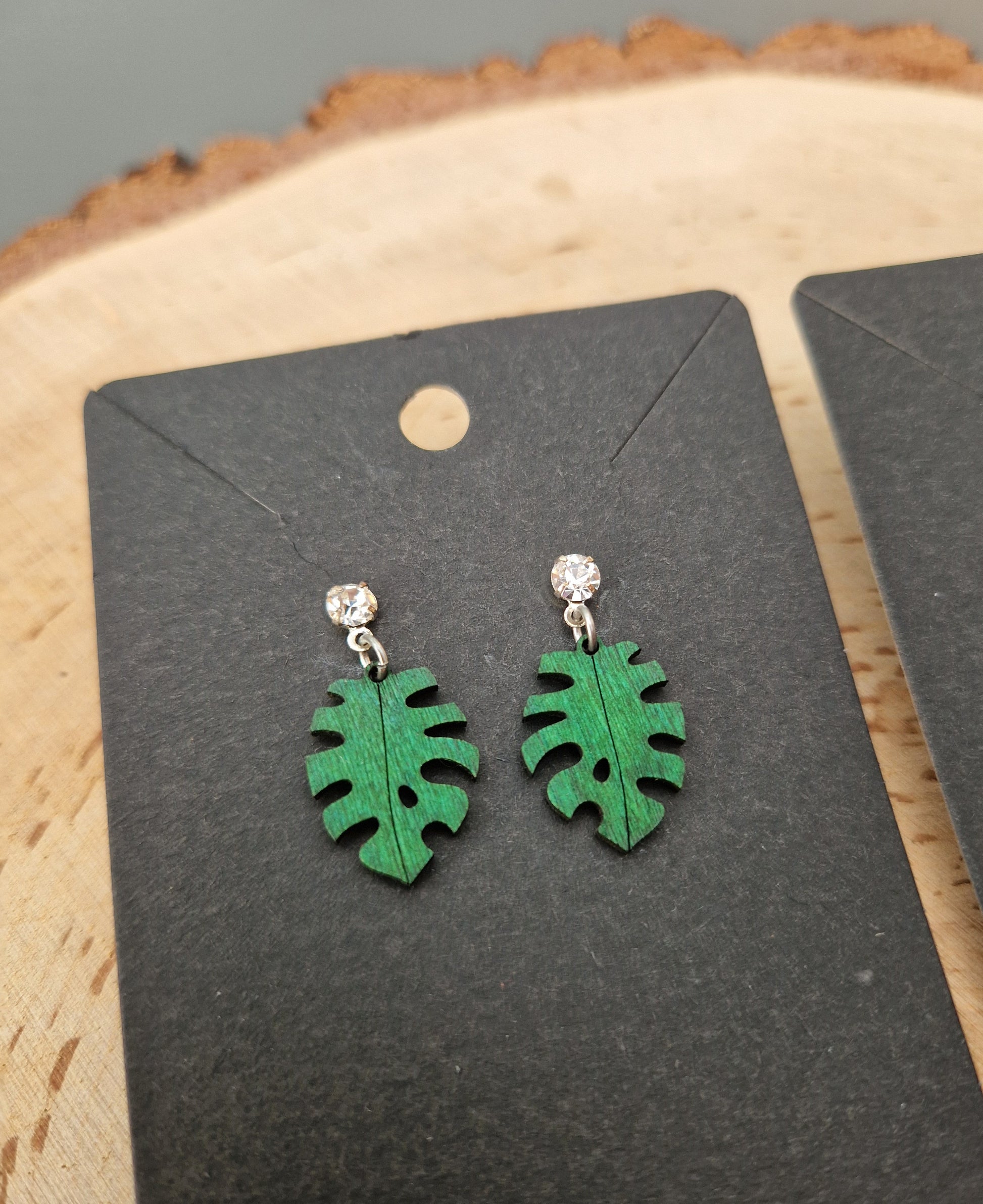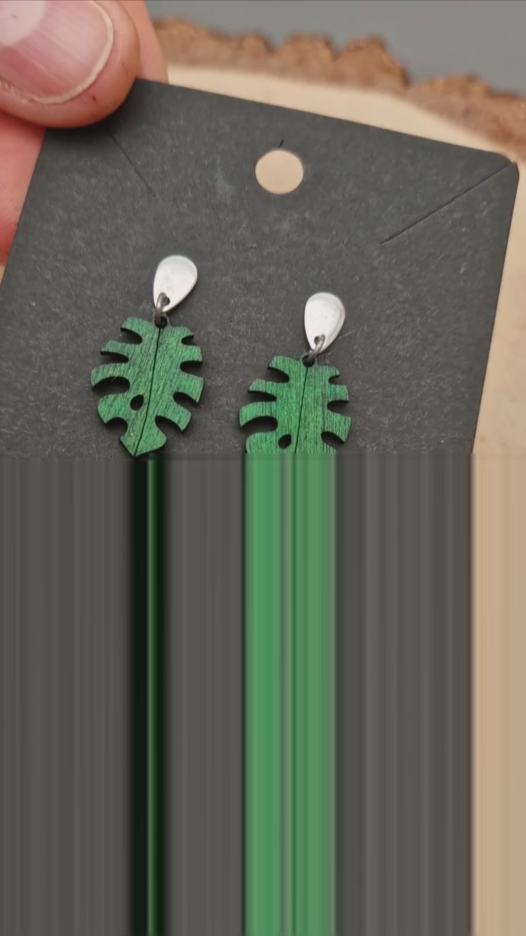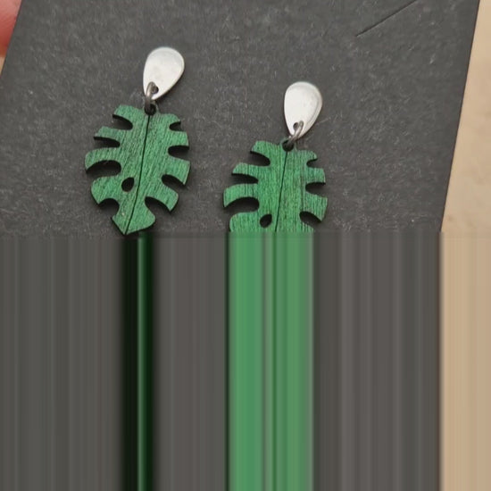 Bring island vibes to your look with these striking tropical leaf earrings. Laser-cut from wood and hand-painted in lush green, they capture the essence of nature with a sleek, modern edge.